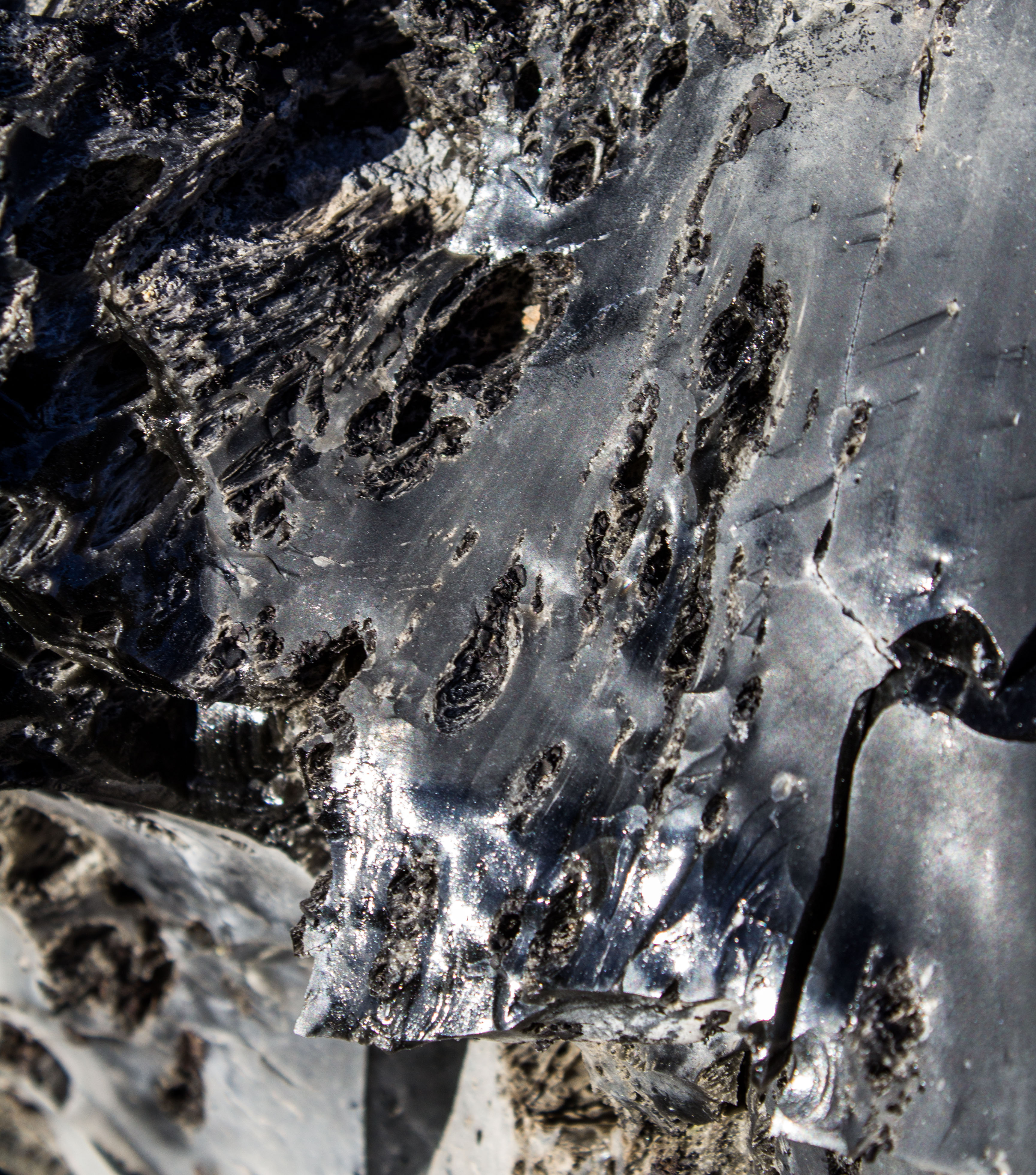 Obsidian is hard yet brittle volcanic glass formed by rapid cooling of lava along the edge of a flow. Easily fractured into shards with sharp edges, it was valued for its cutting and piercing properties by ancient peoples and continues to be used in knives and surgical scalpels today. It’s a beautiful, bad-ass rock.