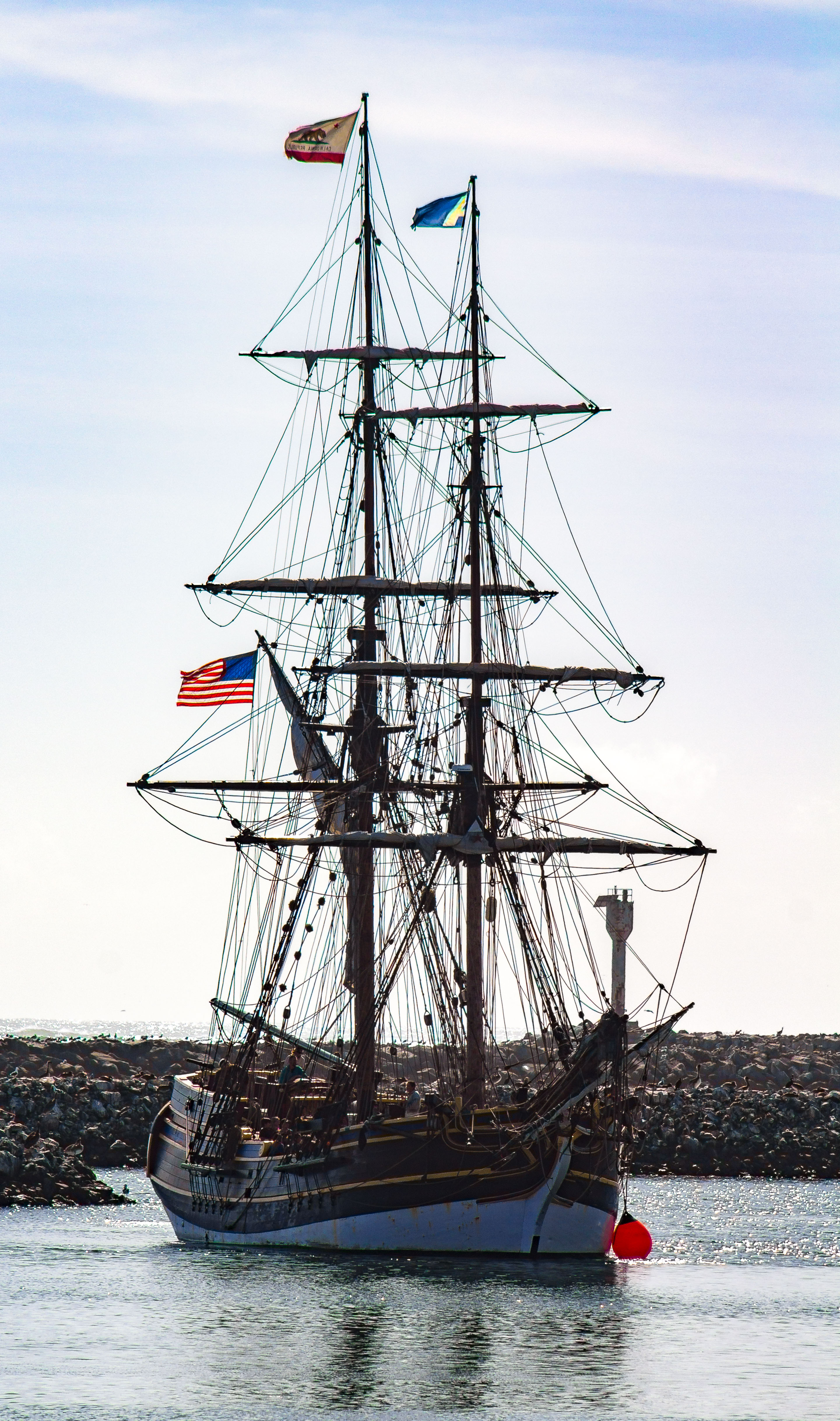 The Lady Washington is a working full-scale replica of an actual mid-18th century sailing ship. In 1788, the original Lady Washington became the first American ship to drop anchor off what would become the West Coast of the United States. Perhaps the original once visited Half Moon Bay as well.